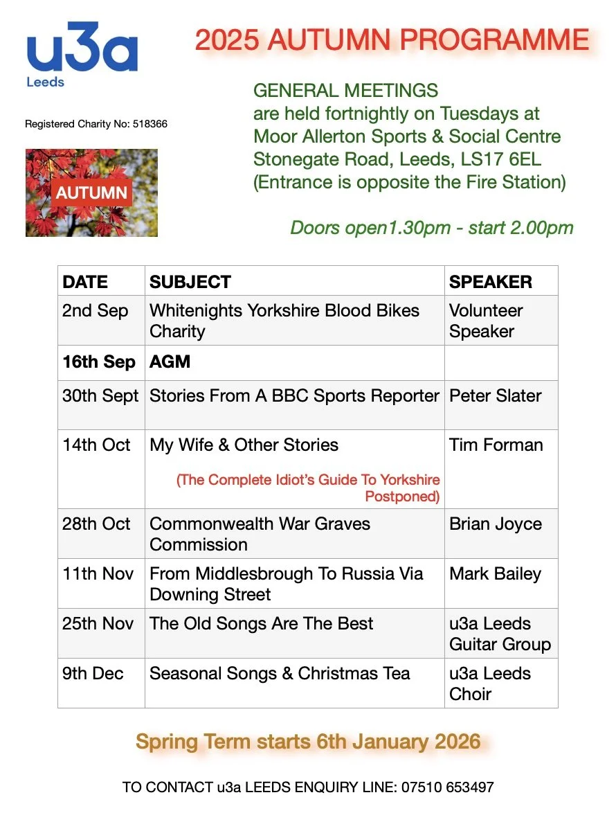 16th Sept u3a LEEDS ANNUAL GENERAL MEETING
